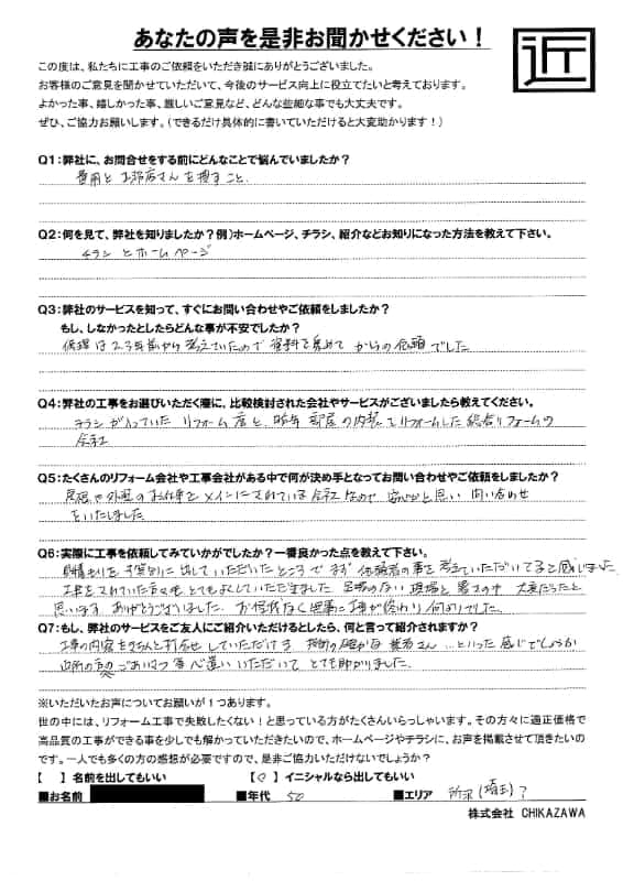 お客様の声 – 所沢市在住のお客様