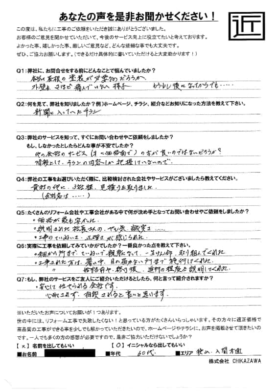 - 2.7 お客様の声 – 所沢市在住のK.K様