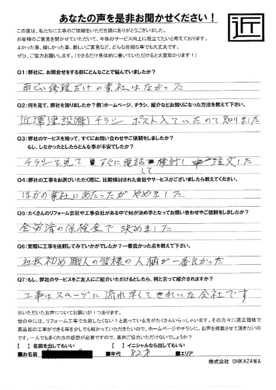 お客様の声 – 所沢市在住のK.K様